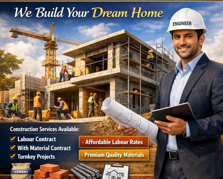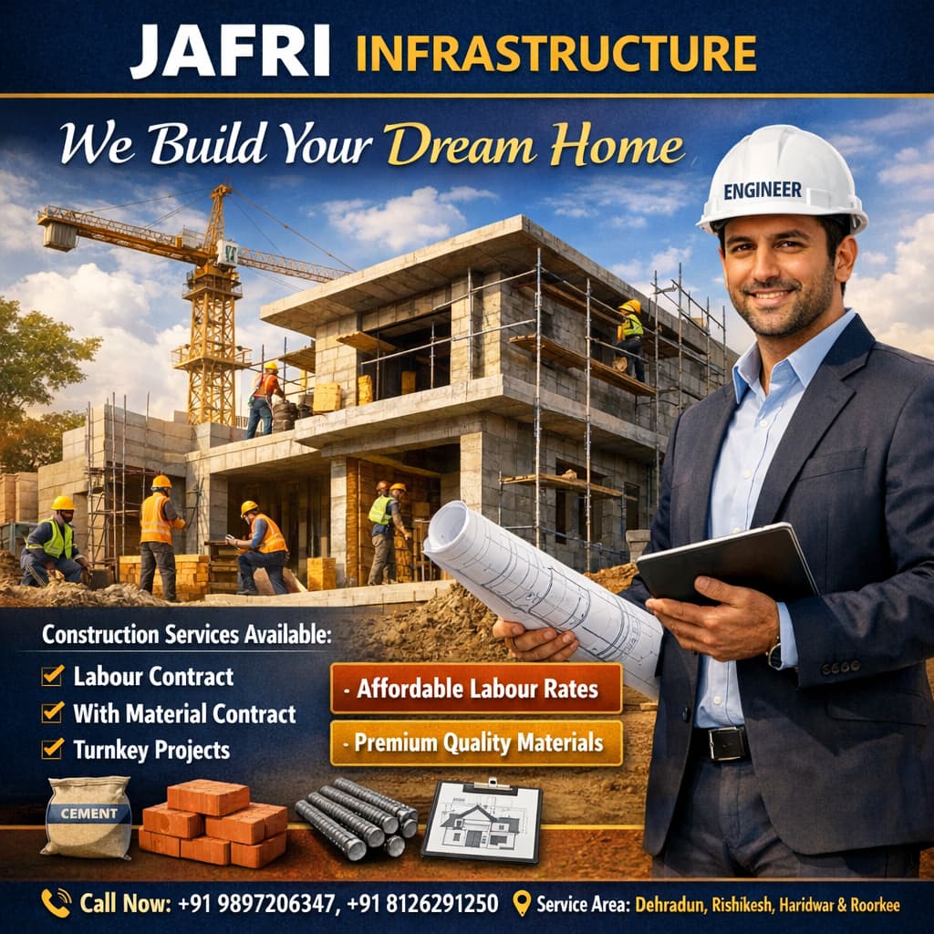 Jafri Infrastructure is a trusted civil contractor in Dehradun providing residential and commercial construction services in Dehradun, Roorkee, and Haridwar. We specialize in house construction, building projects, and renovation with quality workmanship and professional engineering.